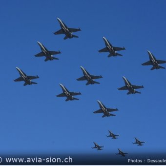Après 65 ans passé à la base aérienne de Sion, c’est le dernier Cours de Répétition "CR" de la BA14 sur cet aérodrome. Ce Cours de Répétition "CR" à eu lieu pendant le WEF et les Cours d’Escadrille "CE" ont suivi peut après. Avions engagé .....FA 18 , F5 Tiger PC7, PC12 et Super Puma
